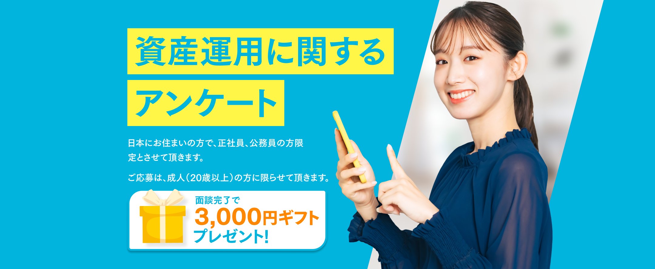 本ページ経由で個別面談をされた方で、条件を満たしたお客様に、ギフト3,000円分を付与いたします。